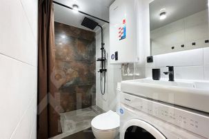 Санузел: Чистый, в кафеле. Душевая кабина, туалет, раковина, зеркало, фен.