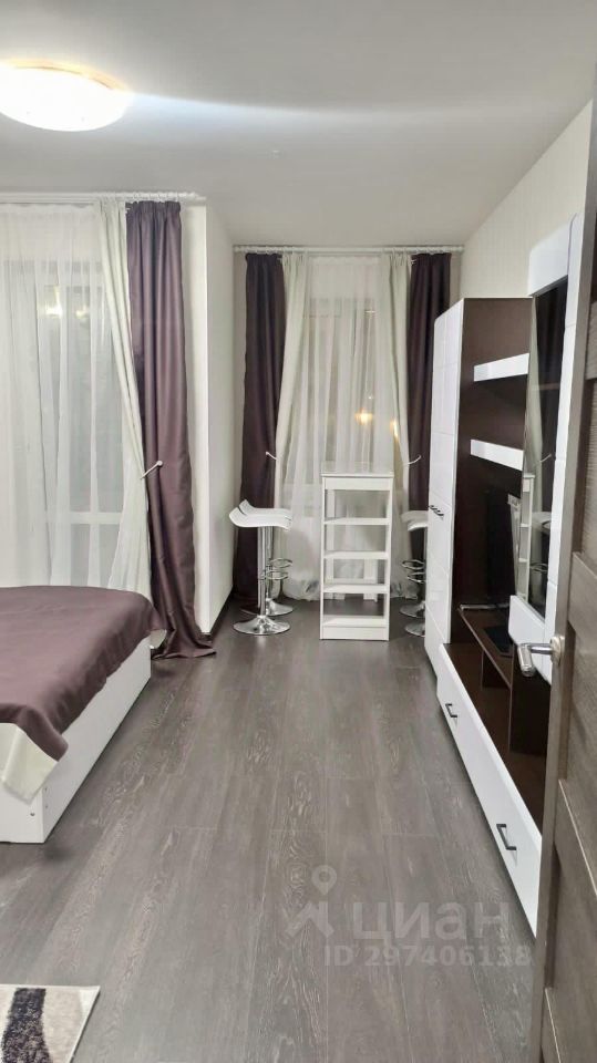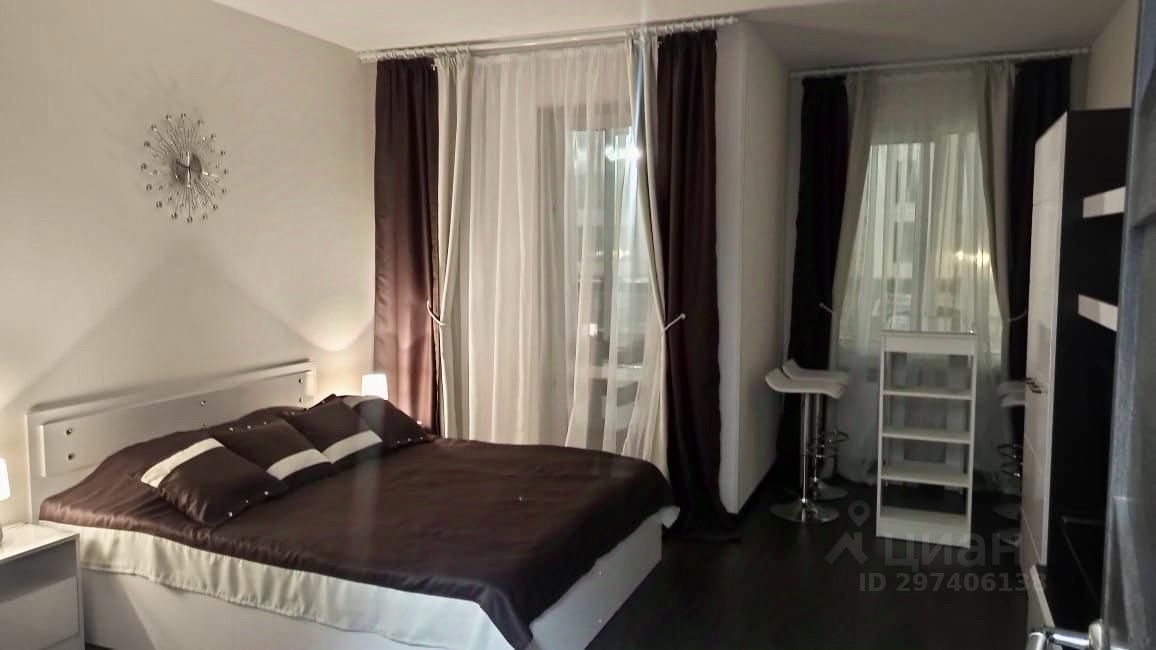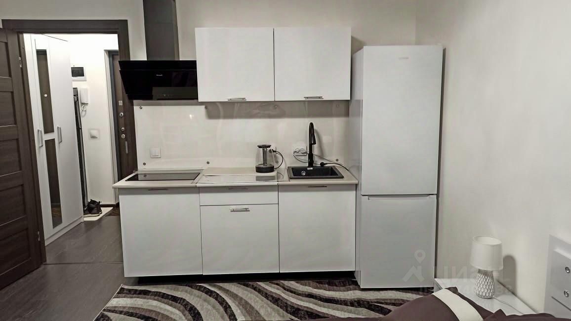 Квартира на 1 эт. 8 эт. Монолитного дома 2022 г.п.. общ.S 28 кв.м., комната правильной формы с выделенной обеденной зоной, 2-х сп. Кроватью с матрасом Аскона, мебельная стенка с тв, кухонный встроенный гарнитур с варочной эл. Панелью, вытяжкой, свч, эл. Чайником и холодильником. Окна во двор, застекленная лоджия. В прихожей установлен шкаф и стеллаж. Совмещенный сан.узел в современном кафеле, душевая кабина, стиральная машина автомат. Квартира в отделке шоколад. Все новое. Спокойные соседи.