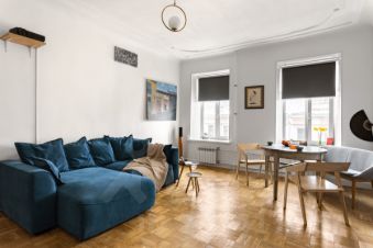 Чудесная квартира с видом на крыши Петербурга. В квартире есть все необходимое, в том числе проектор. Пятый этаж без лифта.