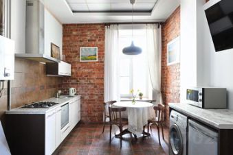 Однокомнатная квартира на четвёртом этаже с видом на парк подойдёт для размещения пяти гостей. Лифта нет. К услугам гостей бесплатный Wi-Fi, кабельное телевидение, два телевизора. Для гостей, путешествующих на автомобиле, предусмотрена уличная платная парковка. Кухня оборудована необходимым для приготовления еды: газовая плита, микроволновая печь, чайник, холодильник, посудомоечная машина и необходимая посуда. К услугам гостей двуспальная кровать, кушетка и диван. Совмещённый санузел с душевой кабиной, нагреватель воды, стиральная машина, фен, утюг и гладильная доска.