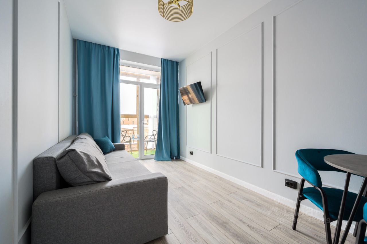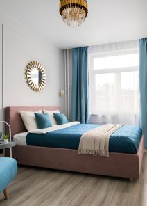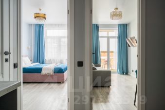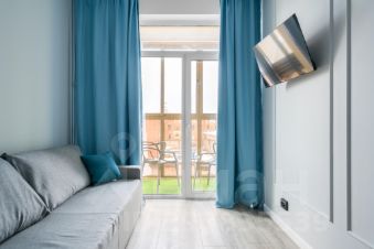 Лоджия с окнами в пол. Кровать king-sizе с мягким изголовьем, а в гостиной удобный диван.