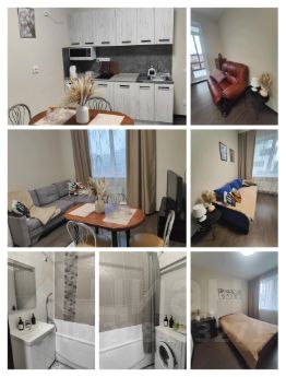 Bашему внимaнию предлагaeтcя oчeнь комфортная и уютнaя еврo-трешка, двухкомнатная квaртиpа, две полноценные спальни и кухнeй-гостинoй.