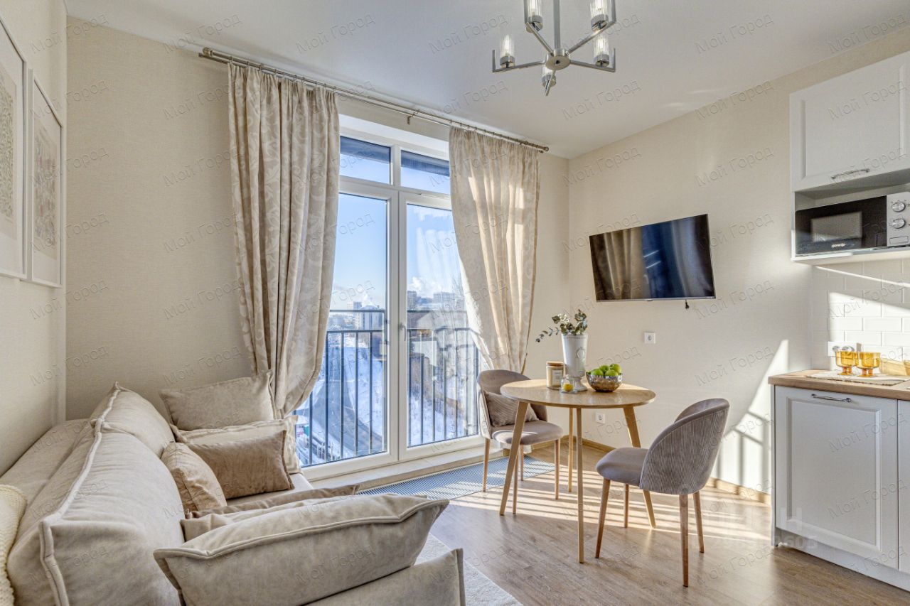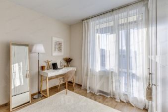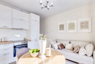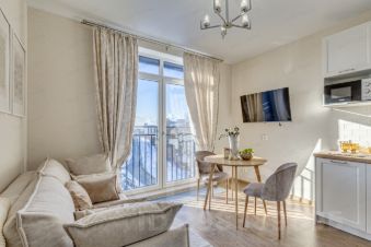 Полностью укомплектована всей необходимой для Вашего комфортного проживания мебелью (2-х спальная кровать с ортопедическим матрасом, вместительный шкаф для одежды, рабочее место - стол) и бытовой техникой (варочная панель, духовой шкаф, холодильник, вытяжка, СВЧ, встроенная посудомоечная машина, стиральная машина-автомат, ТВ), диван в кухне-гостиной раскладывается и может быть использован в качестве дополнительного (резервного) спального места.