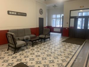 расположена в пешей доступности от метро в тихой и спокойной части Василеостровского района.