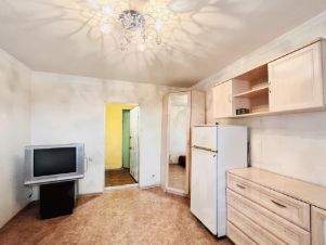 Светлая комната с мебелью и техникой (холодильник, телевизор, стиральная машина, эл.чайник) .