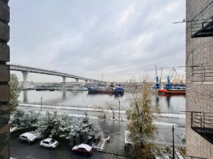 Окна выходят на Морской канал. Балкон (общий) на Финский залив.