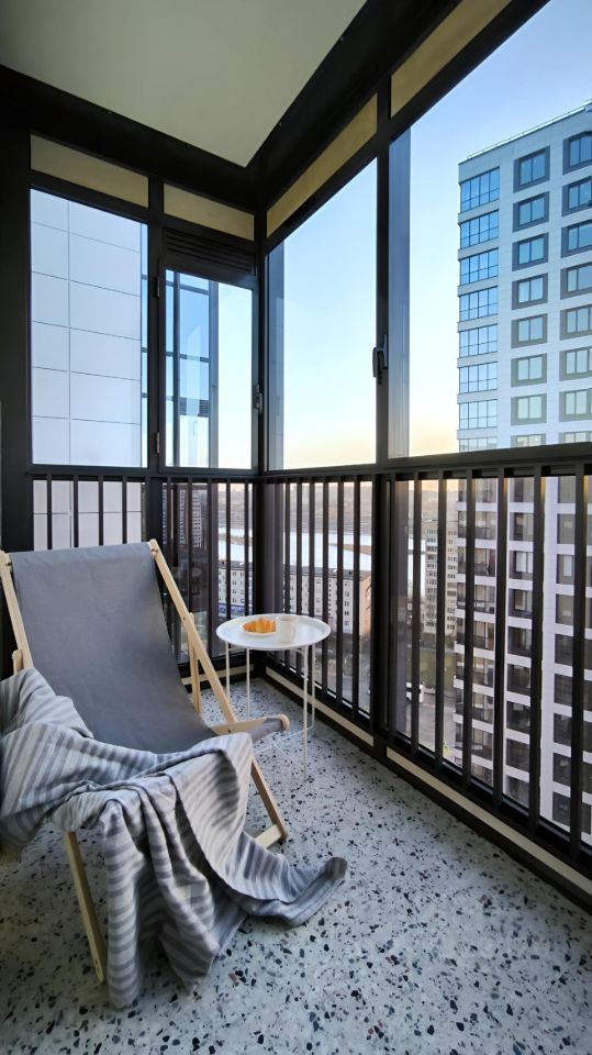 - просторный балкон с панорамным остеклением располагает к отдыху.