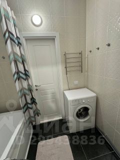 Совмещенный санузел, стиральная машина Indesit, зеркальный шкафчик и тумба, корзина для белья, хозяйственный шкаф в нише. Дополнительно: вертикальный пылесос, набор для уборки, сушилки для одежды, гладильная доска.