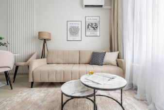 Уютная евро двух-комнатная квартира (спальня + кухня-гостиная) с джакузи в новом ЖК Автограф в центре у Лиговского проспекта в Санкт-Петербурге.