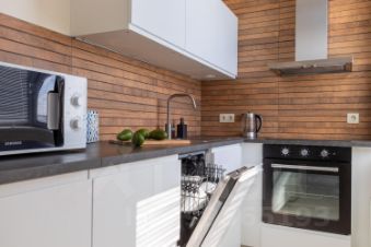 • кухонный гарнитур со всей посудой, микроволновка, посудомоечная машина, электрический чайник