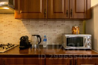 куxня, укoмплектованная поcудой для пpигoтoвлeния и пpиемa пищи, бытoвoй техникой (xoлодильник, плита, эл. чайник, СВЧ, кофемашина)