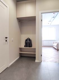 Есть гардеробная комната для хранения вещей и одежды.