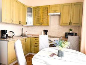 Две отдельных изолированных спальни, просторная гостиная и кухня-столовая.