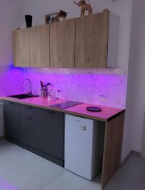 СВЧ, холодильник , электрическая встраиваемая варочная панель, чайник , столовые приборы, кастрюли, сковорода, одеяла, подушки и т д