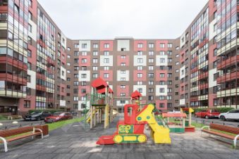 ЖК находится в районе с развитой инфраструктурой ( в пешей доступности находится парк и сам комплекс Мега Дыбенко с различными магазинами и кафе )
