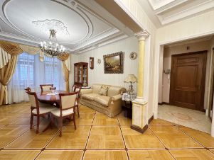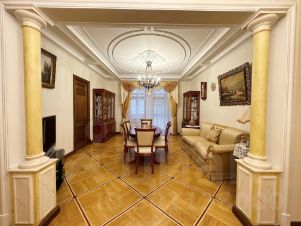 Изысканная отделка в классическом петербургском стиле, мебель из ореха, выполнен дизайнерский ремонт, деревянные стеклопакеты со встроенной системой жалюзи с мраморными подоконниками.