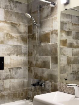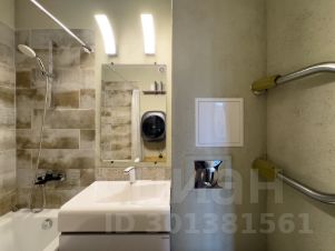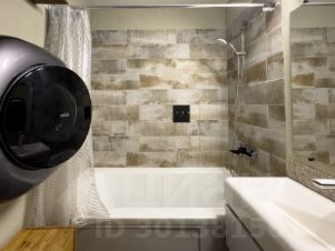2. Совмещенный санузел с ванной, небольшой стиральной машиной, есть зеркало с хорошим светом и достаточно мест хранения.