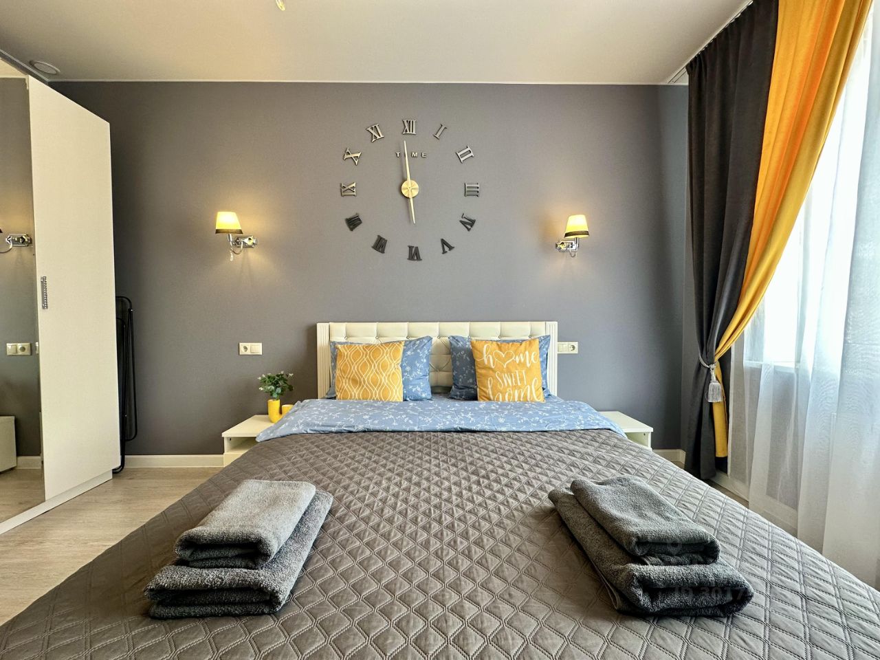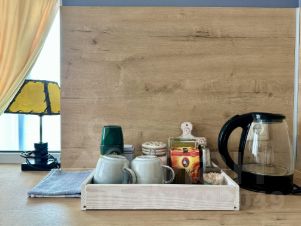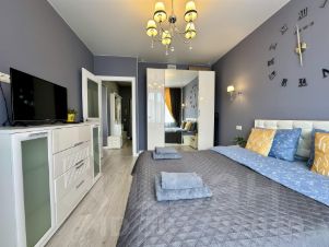 В квартире Вас ждет полностью оборудованная кухня, отдельная просторная спальня с удобной двуспальной кроватью, обещающей спокойный и крепкий сон; и вторая спальня с раскладывающимся диваном и панорамным окном.