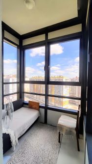- Кухня-гостиная 19 кв м с 3-мя окнами и выходом на застеклённый балкон,
