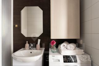 Вся необходимая бытовая техника: варочная поверхность, холодильник, СВЧ, чайник. Утюг, гладильная доска,стиральная машина,водонагреватель.