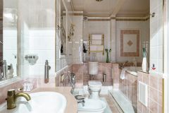 Санузел: с удобной ванной с подсветкой, теплым полом, душевой кабиной и биде.