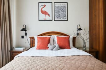 Две полноценные спальни с двуспальными кроватями 160*200 и раздвижным диваном.