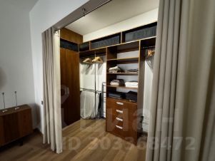 Планировка включает в себя просторную кухню-гостиную, спальную комнату с большой гардеробной, ванную комнату. Схема планировки есть в фотографиях.