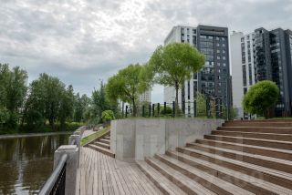 Жилой комплекс расположен на самом берегу реки Охты, с благоустроенной набережной. Идеально для вечерних прогулок, занятия активностями на свежем воздухе.