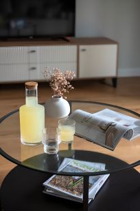Отличительной особенностью дома являются индивидуальная система вентиляции с рекуперацией тепла от финского производителя Swеgоn (необязательно открывать окна для проветривания, не будет никаких сквозняков) и система отопления теплый пол (нет привычных радиаторов). Тактильно очень приятно и комфортно ходить по теплому паркету. В санузле установлен электроподогрев пола.