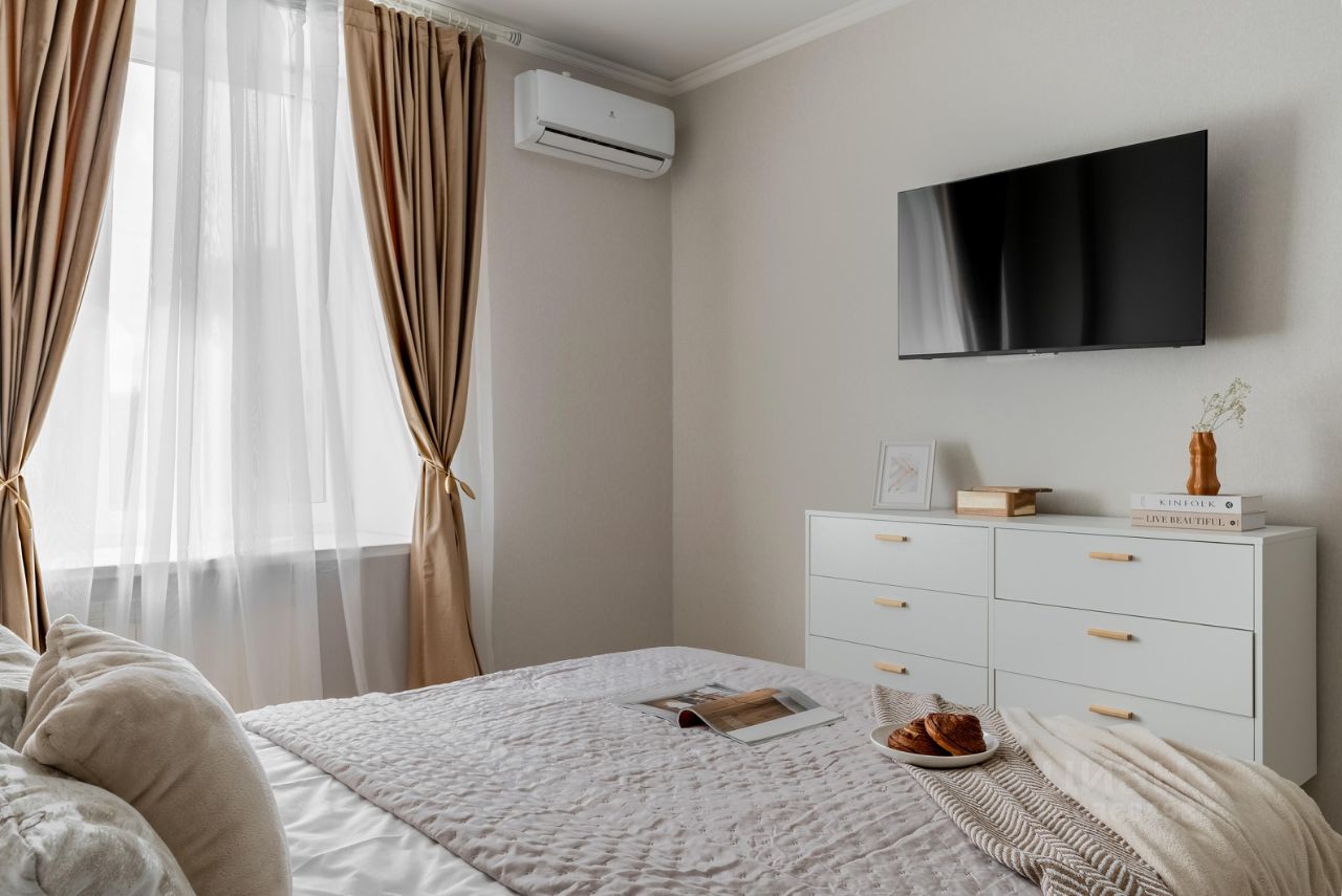 - Современная бытовая техника: 2 телевизора со Smart TV, кондиционер, посудомоечная и стиральная машины, чайник, Кофеварка, электрическая плита, духовой шкаф, микроволновая печь, холодильник, бойлер, фен, утюг и сушилка для белья.