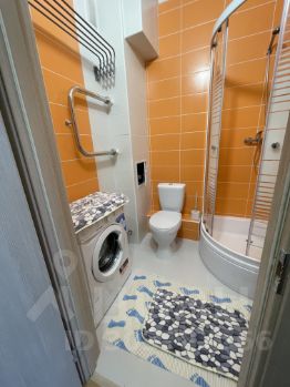 В санузле установлены душевая кабина, стиральная машина, настенная система сушки белья.