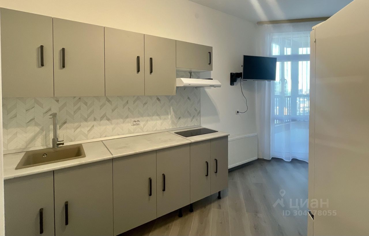 Квартира расположена на 15эт. 20эт. монолитного дома. Общая. S 26 кв.м.. из комнаты выход на лоджию-террасу. Квартира оборудованна: кухонным гарнитурном, варочной панелью, вытяжкой, холодильником, стиральной машиной, тв, комодом, диваном и кухонным столом со стульями, в прихожей имеется шкаф.
