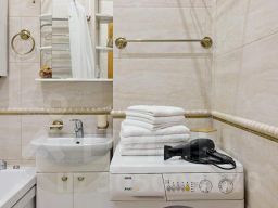 В распоряжении гостей кухонная зона: СВЧ, стиральная и посудомоечная машины; обеденная зона, двуспальная кровать, раскладной диван. Гостям предоставляется: постельное бельё, полотенца.