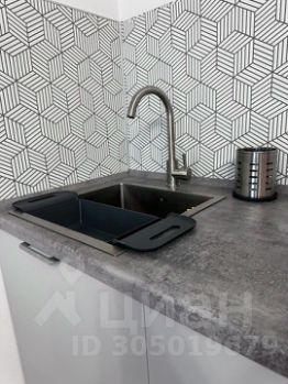 В студии современная кухня с большой рабочей поверхностью, раковина из нержавеющей стали, варочная панель и духовой шкаф с разными программами Weissgauff, мощная вытяжка и много мест для хранения; полноценный холодильник.
