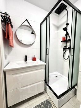 Максимально комфортный сан узел: тумба 80см с глубокими ящиками с доводчиками, стиральная машина с инверторным двигателем на 7 кг, тихая и экономная в потреблении, стильная, выдвижной полотенце сушитель, душ с 3 сценариями подачи воды, полки, крючки для полотенец и халата, влагозащитная розетка для фена/бритвы.