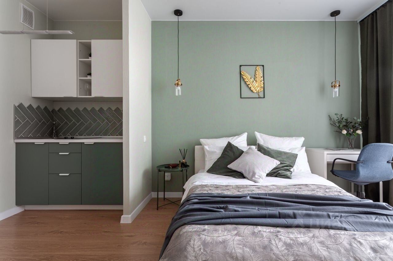 Удобная кровать, качественное белье, кухонный уголок со всей необходимой посудой и техникой (электроплита, холодильник, микроволновая печь, чайник, кофемашина), где вы можете приготовить и разогреть еду