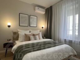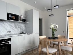 В апартаментах есть оборудованная кухонная зона, микроволновая печь, посудомоечная машина, места для хранения, обеденная зона, двуспальная кровать, раскладная кресло-кровать. Гостям предоставляются постельное бельё и набор полотенец для каждого гостя.