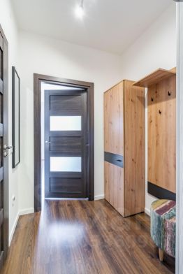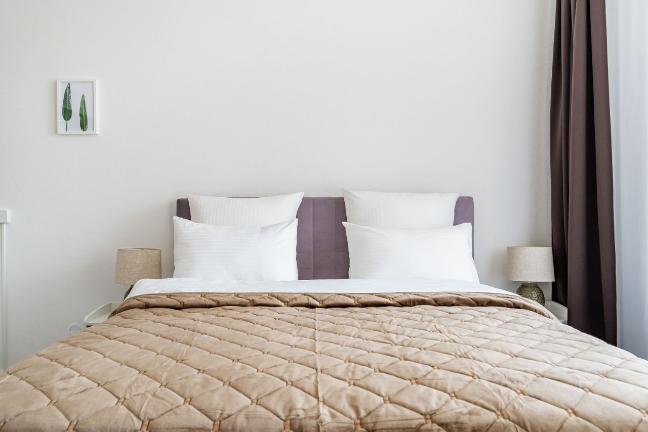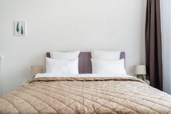 - Двуспальная кровать (160/200) с удобным матрацом,бельё, полотенца, фен, утюг, гладильная доска, сушилка (в т. ч.электрическая), водонагреватель, стиральная машина, средства для обуви и одежды;