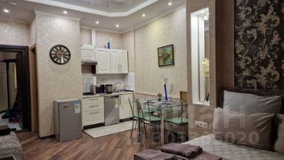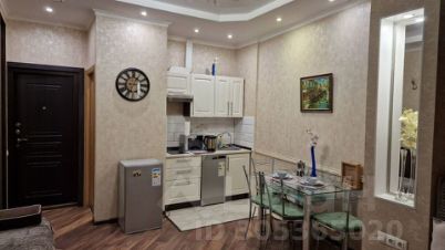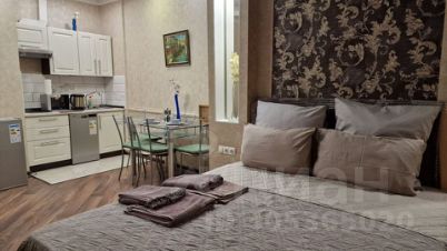 В квартире-студии площадью 36 кв. м. , по дизайн-проекту произведён качественный ремонт, тёплый пол в сан/узле, просторная душевая, пол-ламинат. Кухня полностью оснащена - встроенная техника ( стеклокерамическая панель, вытяжка, микроволновка, трёхступенчатый фильтр тонкой очистки воды), посуда .Также в квартире встроенный шкаф-купе-гардеробная, стиральная машина, утюг, гладильная доска. Вся сантехника новая,Wi-fi.