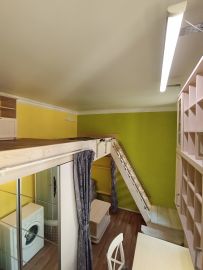 Два спальных места: удобный раскладной диван и уютная берлога на антресоли.