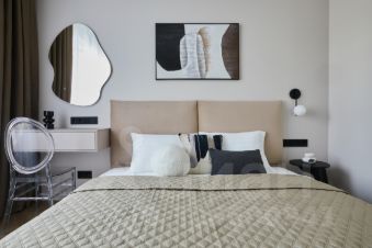 Квартира расположена в новом ЖК на берегу Финского залива на намывных территориях Васильевского острова в историческом центре Петербурга.