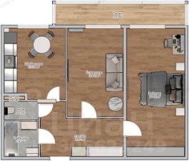 Функциональная планировка включает в себя просторную спальню, уютный зал с камином и просторную полноценную кухню, раздельный санузел, прихожую и большую лоджию.