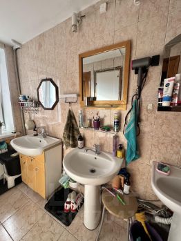 Умывальная комната, душевая и туалет общие на три комнаты.