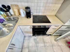 техника : вытяжка, холодильник, варочная поверхность, духовой шкаф, печ СВЧ, электрочайник, кофемашина, напольной вентилятор, электроутюг стиральная машина-автомат;