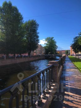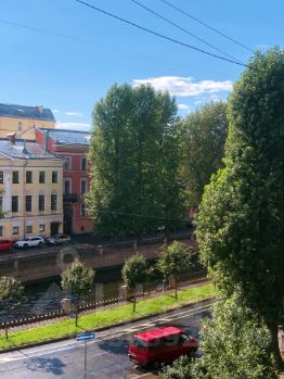 Комната светлая, окно выходит на живописный изгиб канала Грибоедова - летом можно смотреть, как мимо проплывают кораблики. Много зелени под окнами. Из мебели - диван, стол, два стула и холодильник. На кухне есть свой шкафчик (с некоторым количеством посуды), плита и стиральная машина, одна на двоих с соседкой.