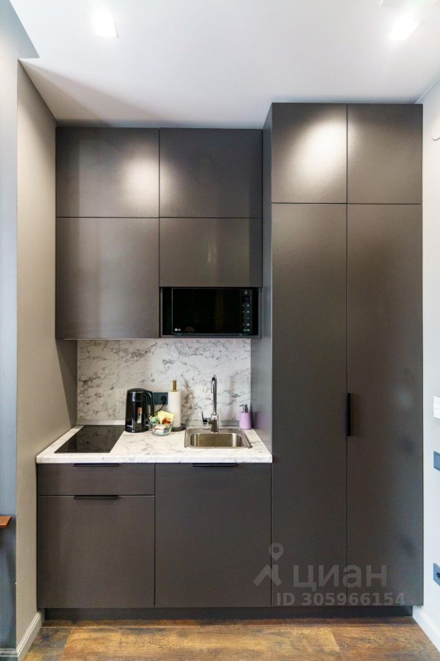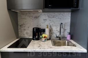 - Мини-кухня с индукционной варочной панелью, вытяжкой, мини-холодильником, чайником, микроволновой печью;