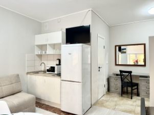 Есть всё самое необходимое - бытовая техника, постельное белье и полотенца, ванные принадлежности (мыло, шампунь, гель для душа), фен, утюг с гладильной доской, интернет и т. д.