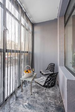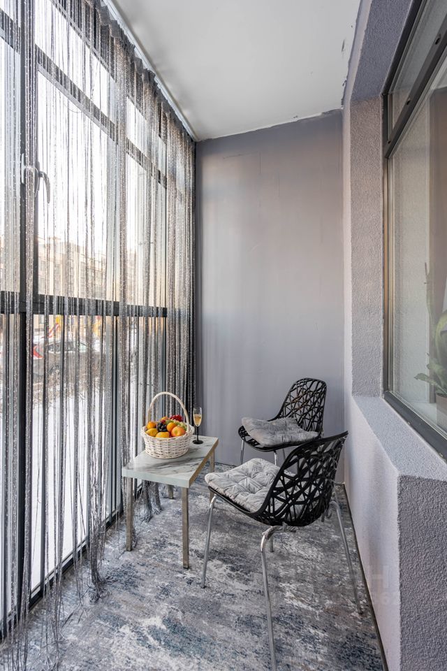 На лоджии есть удобная зона со столиком и стульями. Можно с комфортом проводить там время.