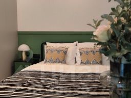 - Современное оборудование и бытовая техника - кондиционер, электрическая плита, полноценный холодильник, микроволновая печь с духовкой, чайник, стиральная машина, кофеварка для капсульного и молотого кофе, утюг и гладильная доска, фен, умная колонка Алиса. На случай обычного для старых районов Петербурга отключения горячей воды установлен бойлер.
