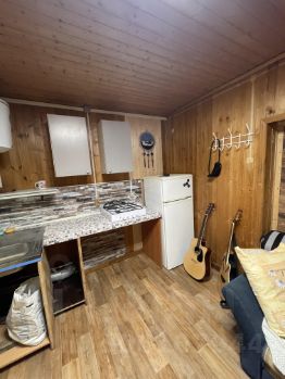 так же в комнате стоит холодильник, микроволновая печь и плита
